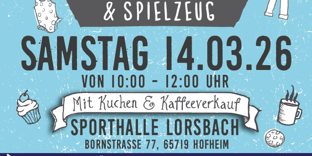 Wir bieten wieder einen Abgabebasar am 14.03.2026 von 10:00 Uhr bis 12.00 Uhr in der Lorsbacher Turnhalle an. Auch dieses Mal findet der Basar zugunsten des Lorsbacher Fördervereins „Wurzelkinder“ für die Grundschule und den Kindergarten statt.